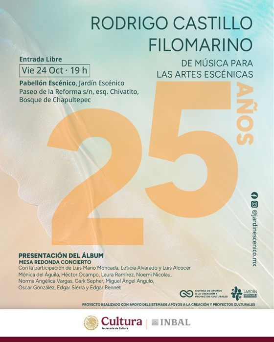 En el contexto de una trayectoria de 25 años dedicados a la creación de música original para las artes escénicas, el compositor mexicano Rodrigo Castillo Filomarino presenta una producción fonográfica sin precedentes que recopila lo mejor de su obra, desde 2002 hasta 2024. Este proyecto, respaldado por el Sistema de Apoyos a la Creación y Proyectos Culturales de la Secretaría de Cultura, no solo celebra su contribución al teatro y la danza, sino que también busca dignificar las condiciones de producción musical en las artes escénicas mexicanas. La función de presentación se llevará a cabo el 24 de octubre a las 19:00 horas en el Pabellón Jardín Escénico, con acceso en gratuidad, un evento que promete ser un viaje sonoro a través de un cuarto de siglo de creación artística. La mesa redonda estará moderada por Luis Mario Moncada, Leticia Alvarado y Luis Alcocer, y contará con la participación de Mónica Aguilar, Héctor Ocampo, Laura Ramírez, Noemí Nicolau, Norma Angélica Vargas, Gark Sepher, Miguel Ángel Angulo, Óscar González, Edgar Sierra y Edgar Bennet.